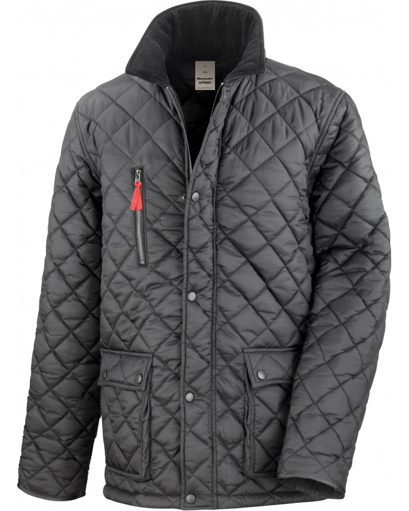 Poche poitrine avec taquet rouge, poches plaquées fermées par boutons pression avec accès latéral chauffe-mains
