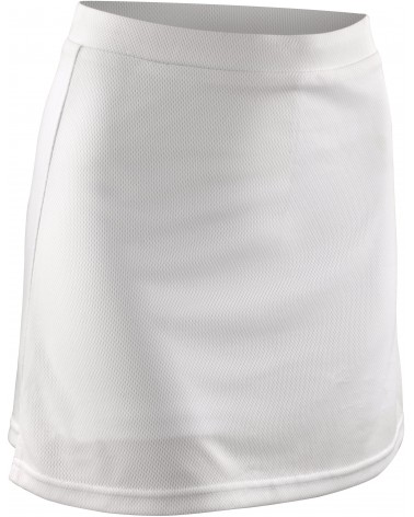 Jupe : 100% polyester. Short : 95% coton / 5% élasthanne. Tissu léger Quick Dry respirant et à séchage rapide. Tissu gaufré. Coutures plates latérales. Short moulant intégral. Ceinture plate élastiquée. Fentes latérales.