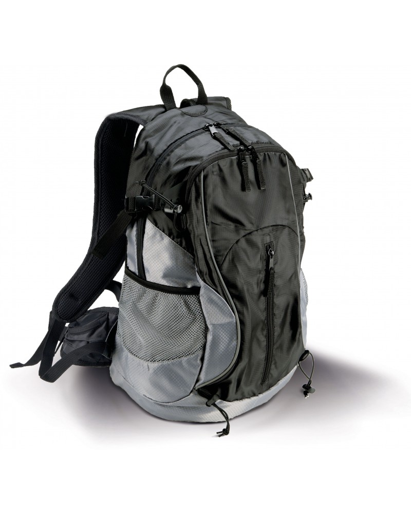 Sac à dos multisports/randonnée en ripstop et polyester alvéolé. 2 compartiments interieurs, poche zippée devant, poches côtés en filet, équipé d'un élastique porte baton, bretelles et ceinture ergonomiques, orifice prévu pour poche à eau.