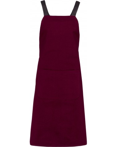 100% coton biologique. OCS100 certificat délivré par Ecocert Greenlife. Tissu canvas très résistant. Sangles d'attache en coton chevron croisées dans le dos et passant dans des oeillets métal à la taille. Poche devant L 30 cm - H 20 cm. Dimensions: H 90 cm - L 76 cm. Ce produit a subi un traitement spécial et présente un aspect volontairement vieilli. Ce procédé de fabrication implique des variations de couleurs d'un produit à l'autre et rend chaque pièce unique.