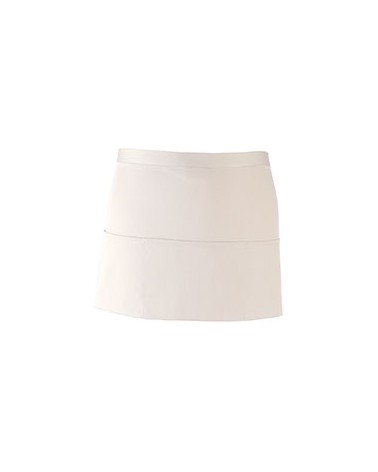 65% polyester / 35% coton sergé. Tablier court avec 3 poches ouvertes. Cordons dans le même tissu que le tablier, longueur de 90 cm. Dimensions : H30cm x L60cm. Lavage industriel 85°C. Lavage domestique 60°C.